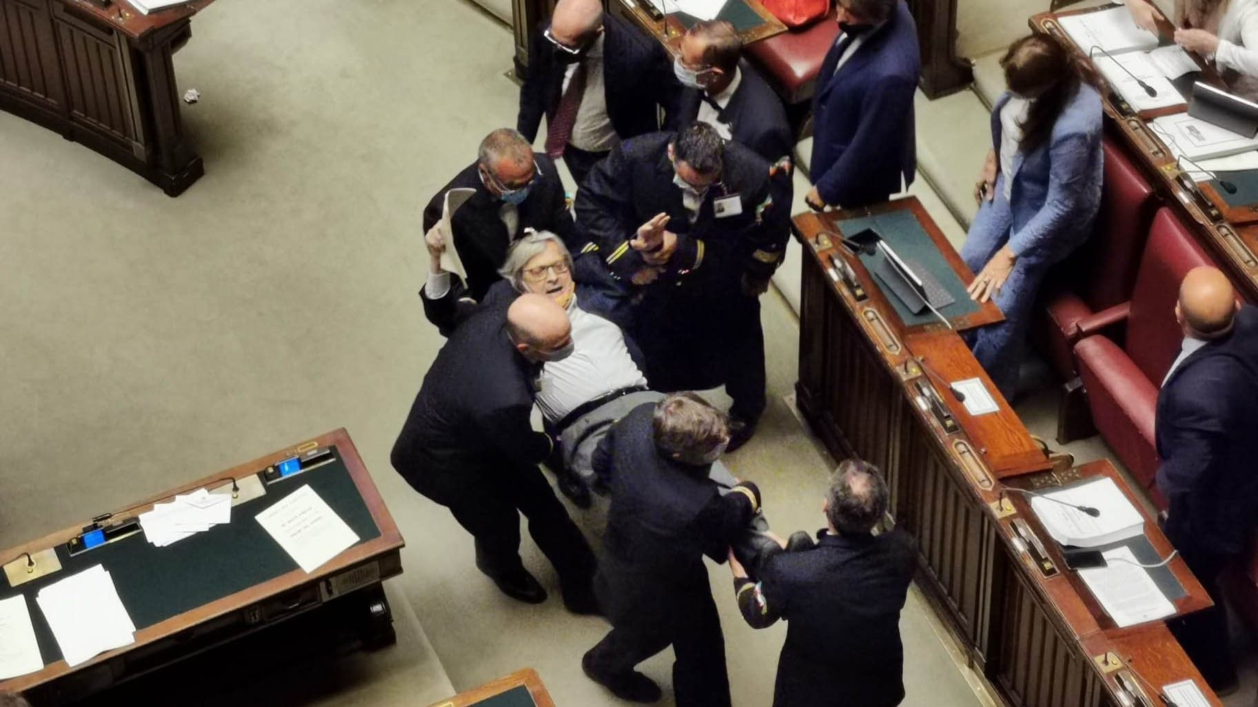 Politikani dhe personaliteti i njohur italian, njëherësh kritiku i artit, Vittorio Sgarbi është nxjerrë me forcë nga parlamenti italian.