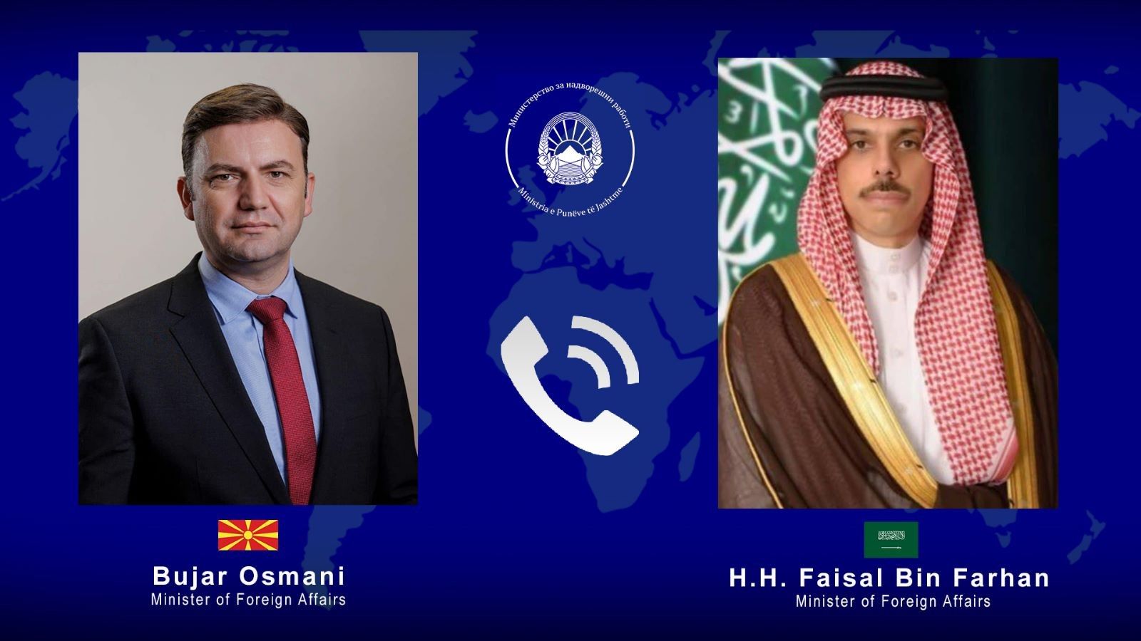 Ministri i Punëve të Jashtme, Bujar Osmani, sot realizoi bisedë telefonike me Ministrin e Punëve të Jashtme të Mbretërisë së Arabisë Saudite, princin Faisal bin Farhan Al Saud.