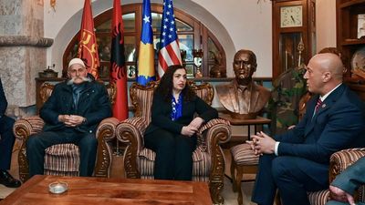 Pas homazheve ajo qëndroi edhe Kullën e Haradinajve ku u prit nga kryetari i Aleancës për Ardhmërinë e Kosovës dhe ish-komandanti i Zonës operative të Dukagjinit, Ramush Haradinaj.