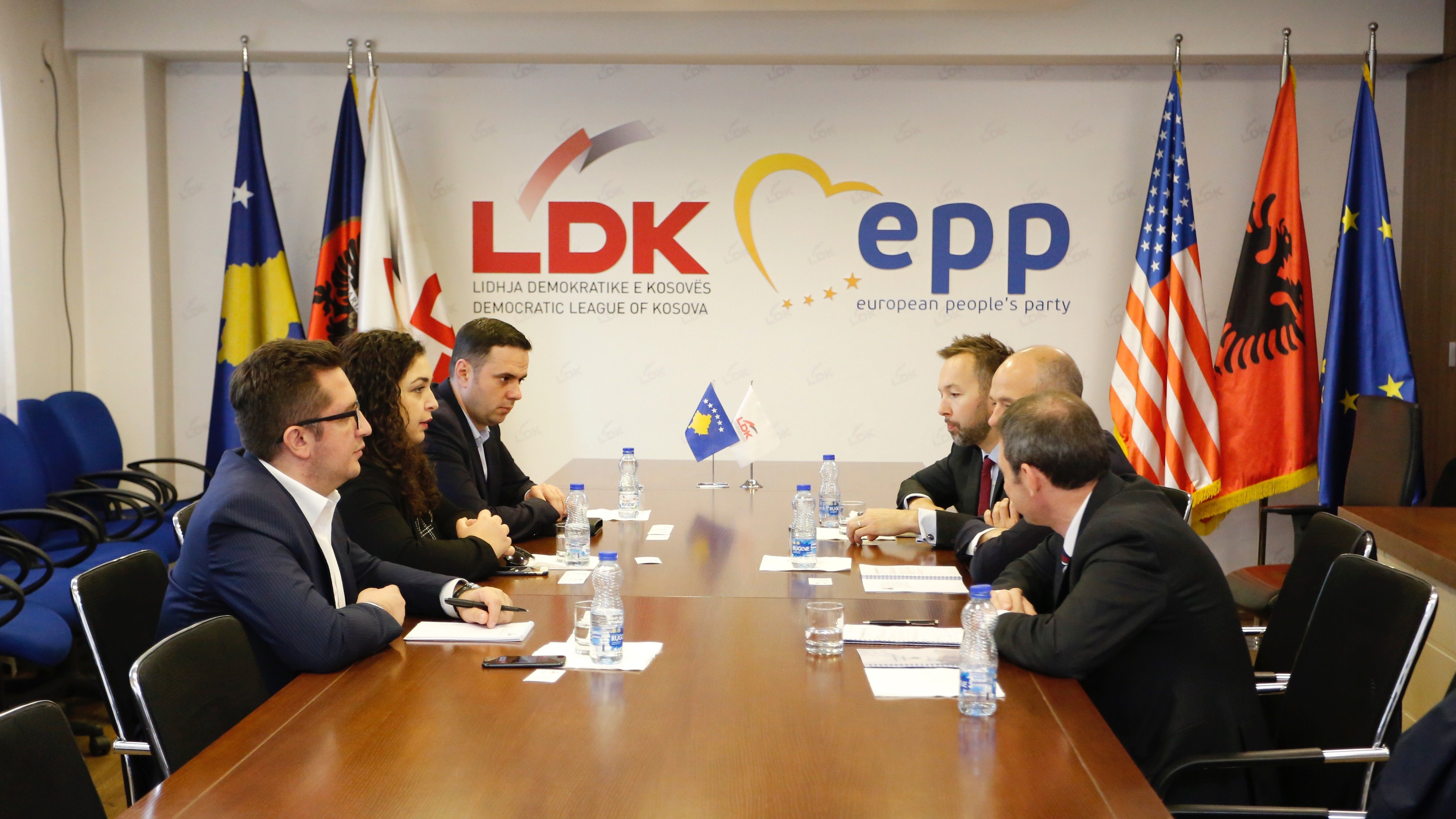 Nënkryetarja e Lidhjes Demokratike të Kosovës, Vjosa Osmani e shoqëruar nga anëtarët e kryesisë, Besian Mustafa dhe Lumir Abdixhiku ka pritur sot në takim përfaqësuesit e Bankës Evropiane për Rindërtim dhe Zhvillim Mattia Romani, drejtor Menaxhues për Ekonomi, Politika dhe Qeverisje, Oleg Levitin, zëvendësdrejtor për Qeverisje dhe Çështje Politike dhe Neil Taylor, Udhëheqës i Zyrës në Kosovë.