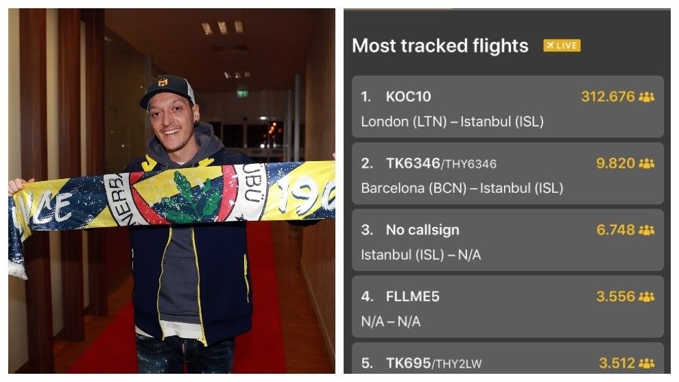 Ozilmania në Fenerbahce: Fluturimi më i ndjekur i të gjitha kohërave, mbi 330 mijë veta e përcjellën udhëtimin e Ozil nga Londra në Stamboll