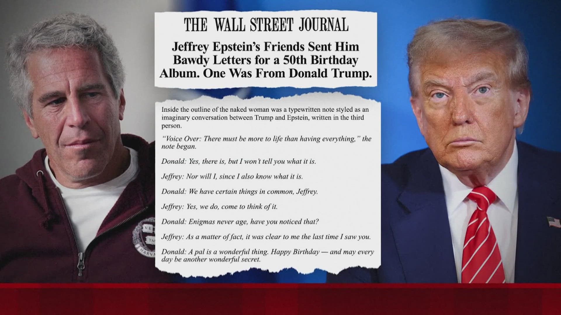 Në raportin e botuar së fundmi, WSJ pretendon se Trump i kishte dërguar Epsteinit një letër personale në vitin 2003, e shoqëruar me një vizatim të një gruaje të zhveshur, në kuadër të 50-vjetorit të financierit të ndjerë, i akuzuar për trafik të miturish.