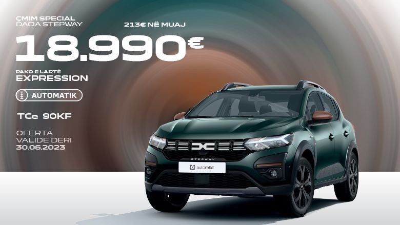Vëmendje të gjithë entuziastëve të makinave! Auto Mita ka një ofertë elektrizuese që do ta bëjë zemrën tuaj të rrahë dhe kuletën tuaj të buzëqeshë. Përgatituni për Dacia STEPWAY me paketën e lartë 'Expression', me ndërruesin atomatik dhe motorin TCe 90KF me benzinë, të gjitha me një çmim të parezistueshëm!