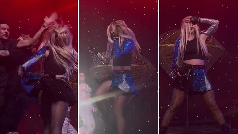 Teksa po performonte para fansave të saj në San Diego, një fans është ngjitur pa leje në skenë dhe e ka goditur atë në fytyrë.
