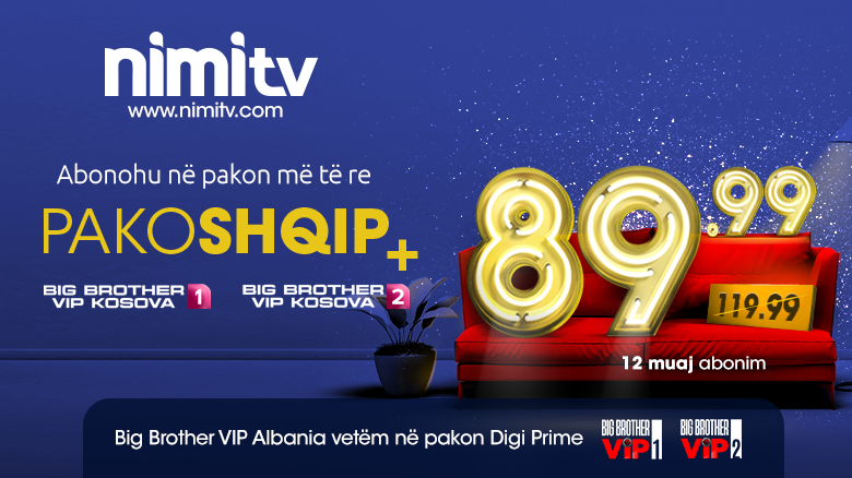 NimiTV vjen me pakon më të re Pako SHQIP + me ofertë për vetëm 89.99€ për 12 muaj abonim.