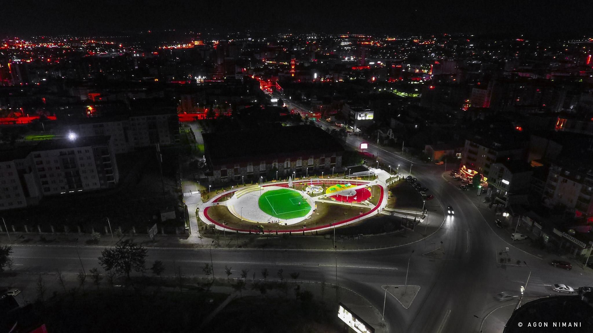 Në disa fotografi të bëra nga Agon Nimani me anë të dronit, park ku qytetarët të cilët janë adhurues të sportit mund të luajnë basketboll, ping-pong, apo të ngjiten në murin alpin por edhe të vrapojnë duket mjaftë mbresëlënës e sidomos në mbrëmje.