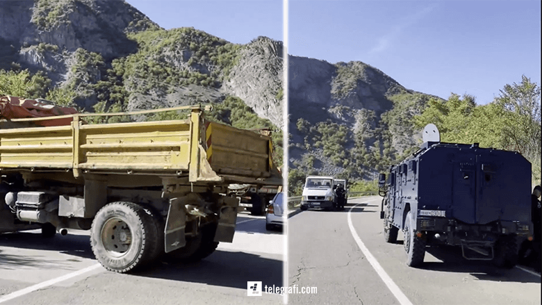 Serbët kanë bllokuar rrugët me kamionë e vetura, duke pamundësuar lëvizjen e lirë në këtë anë, teksa përskaj rrugës kanë ngritur edhe tenda, shkruan Telegrafi.