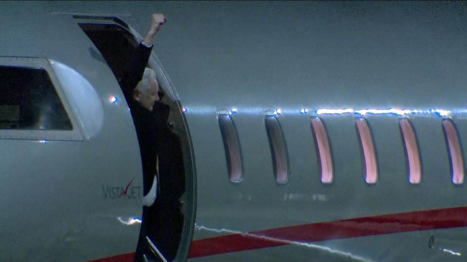 Assange më vonë përqafoi babanë e tij John Shipton përpara se të hynte në një bazë të Forcave Ajrore Mbretërore Australiane.