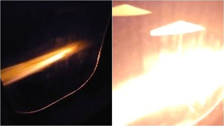 Dhe pamjet tregojnë “shkëndija zjarri” që dalin nga pjesa e pasme e motorit, duke ndriçuar qiellin, natën.