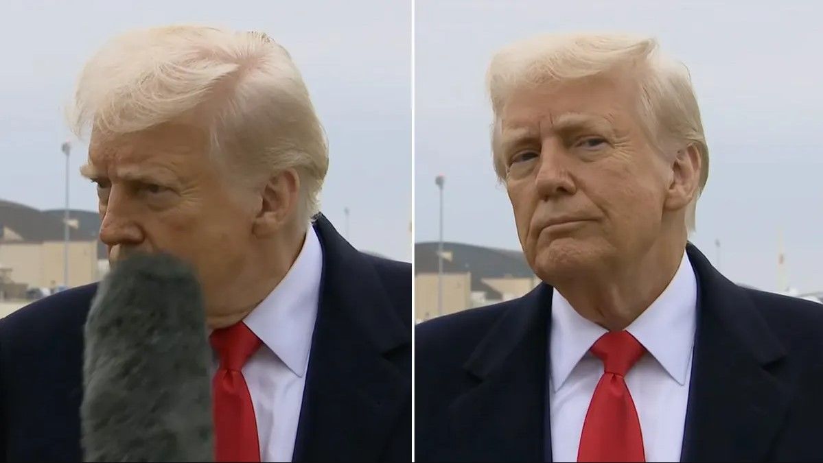 Ai në ato momente ishte pyetur për Rripin e Gazës, dhe derisa menjëherë po kthente përgjigjen ai u godit nga një mikrofon të cilin po ia afronte gazetari, por ishin erërat e forta që e lëvizën më shumë duke e goditur Trumpin në fytyrë, transmeton Telegrafi.