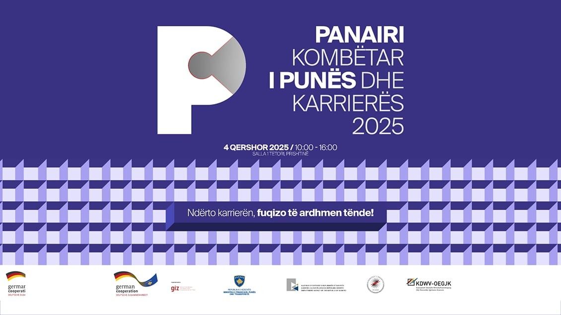 Të gjitha bizneset që dëshirojnë të jenë pjesë e kësaj ngjarjeje ftohen të regjistrohen për pjesëmarrje përmes linkut zyrtar: RegjistrohuNë Panairin Kombëtar të Punës dhe Karrierës 2025 do të ketë:-Shtande ekspozuese për çdo kompani/institucion, pa pagesë;-Prezantime dhe diskutime me ekspertë të tregut të punës;-Kënd për këshillim profesional dhe ndihmë për përgatitjen e CV-së.Ky panair organizohet nga Agjencia e Punës e Republikës së Kosovës, Universiteti i Prishtinës “Hasan Prishtina”, në bashkëpunim me Odën Ekonomike Gjermano-Kosovare, me mbështetje të Qeverisë Gjermane përmes Deutsche Gesellschaft für Internationale Zusammenarbeit (GIZ) GmbH.Shftytëzojeni mundësinë për ta promovuar biznesin tuaj dhe për të gjetur talentët e rinj që do ta çojnë përpara ekipin tuaj.Për më shumë informata, vizitoni https://panairipunes.com, ose na kontaktoni në: info@panairipunes.com, tel: +383 46 55 66 (Viber ose Whatsapp).