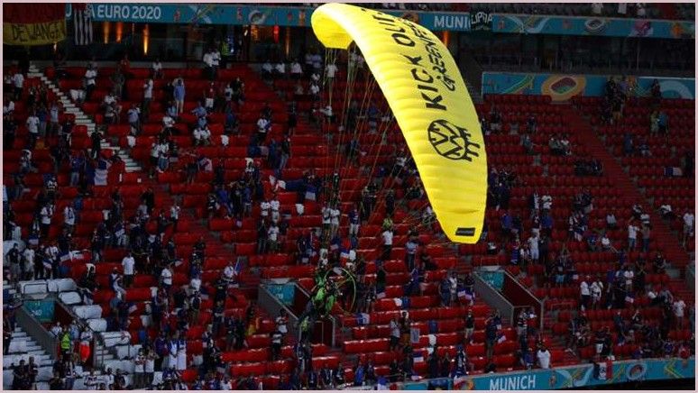 Në njoftimin e Greenpeace u shpjegua se parashutisti kishte protestuar ndaj sponsorit të ‘Euro 2020’, Volkswagen dhe automjeteve të tyre që përdorin naftën si lëndë djegëse. /Telegrafi/