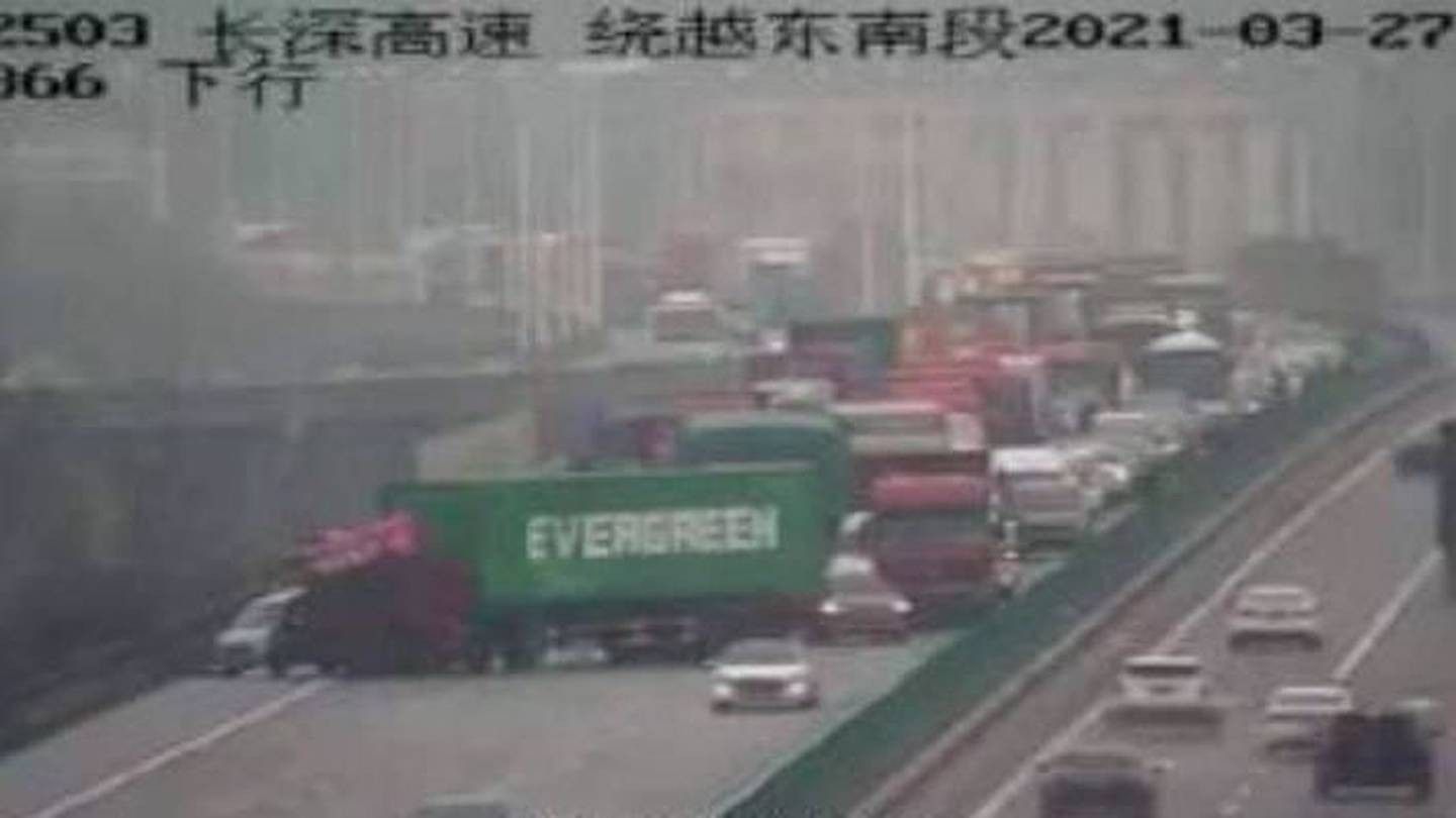Pas anijes në Kanalin e Suezit, kamioni i Evergreen shkaktoi një bllokim trafiku në Kinë - fotografia bëhet virale