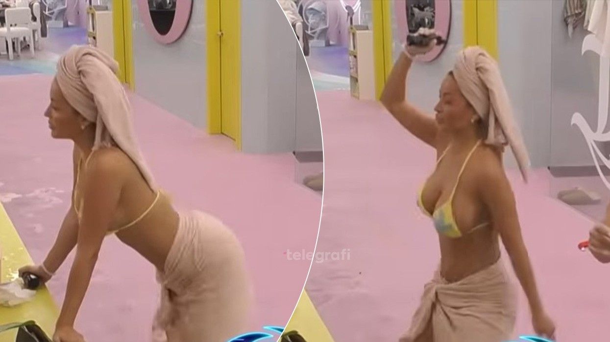 Në një çast, edhe Fjolla iu bashkua vallëzimit, ndërsa Londrimi, i cili ndodhej në dush, reagoi me lëvizje ritmike.