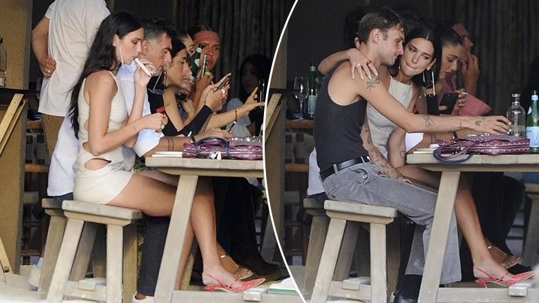 Interpretuesja i hitit “New Rules”, 25 vjeçe, pozoi për një ‘selfie’ të lezetshme ndërsa priste me durim për një vakt me modelin 22 vjeçar, pasi u larguan për në Ibiza pas pushimit të tyre evropian.
