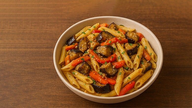 Pastë vegjetariane me krem arrash dhe perime të freskëta