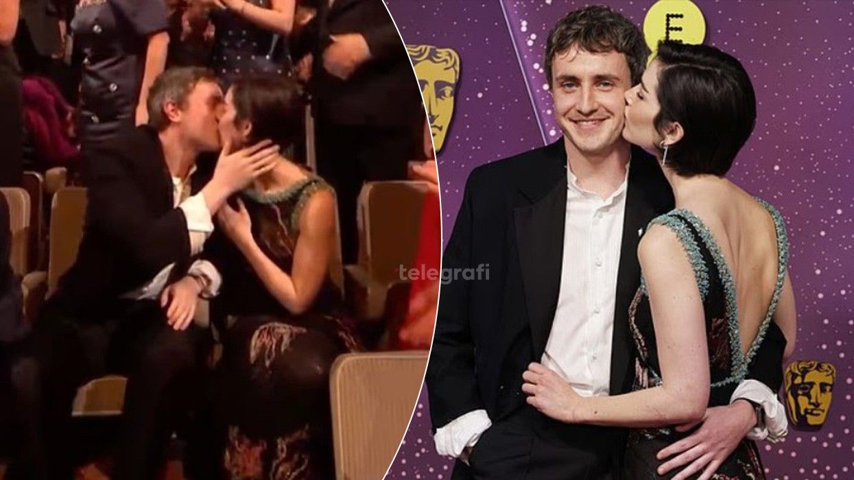 Paul Mescal dhe Gracie Abrams festojnë fitoren e “Hamnet” me një puthje në BAFTA 2026