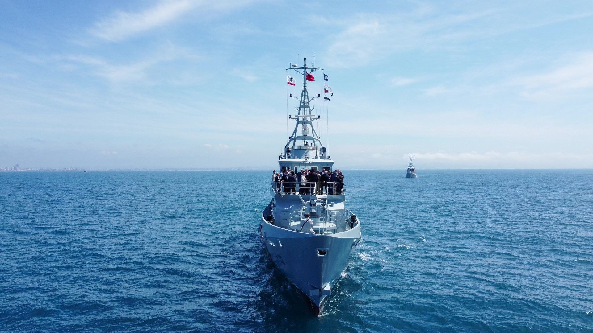 “Si pjesë e Ceremonisë së Hapjes Defender Europe 21 dhe Ditës së Vizitorëve të Shquar në Portin e Durrësit, Gjeneralët e Shteteve të Bashkuara Tod Wolters, Jeffrey Harrigian dhe Christopher Cavoli, Ambasadorja Yuri Kim dhe personalitete të tjera dolën në det me anijet e Rojes Bregdetare Shqiptare për të parë shkarkimin e automjeteve si pjesë e Operacionit të Përbashkët Logjistik nga anija në breg.