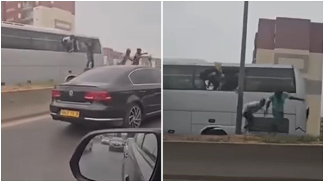 Në bazë të asaj që shihet, së paku 10 persona janë parë duke kërcyer nga autobusi në lëvizje përmes xhamit që ishte i thyer.