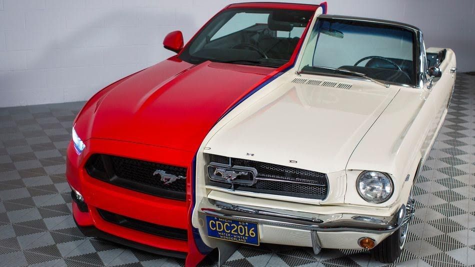 Për këtë arsye, është marrë gjysma e një Mustangu të prodhuar në vitin 1965, si dhe pjesa tjetër që është prodhuar më 2015.