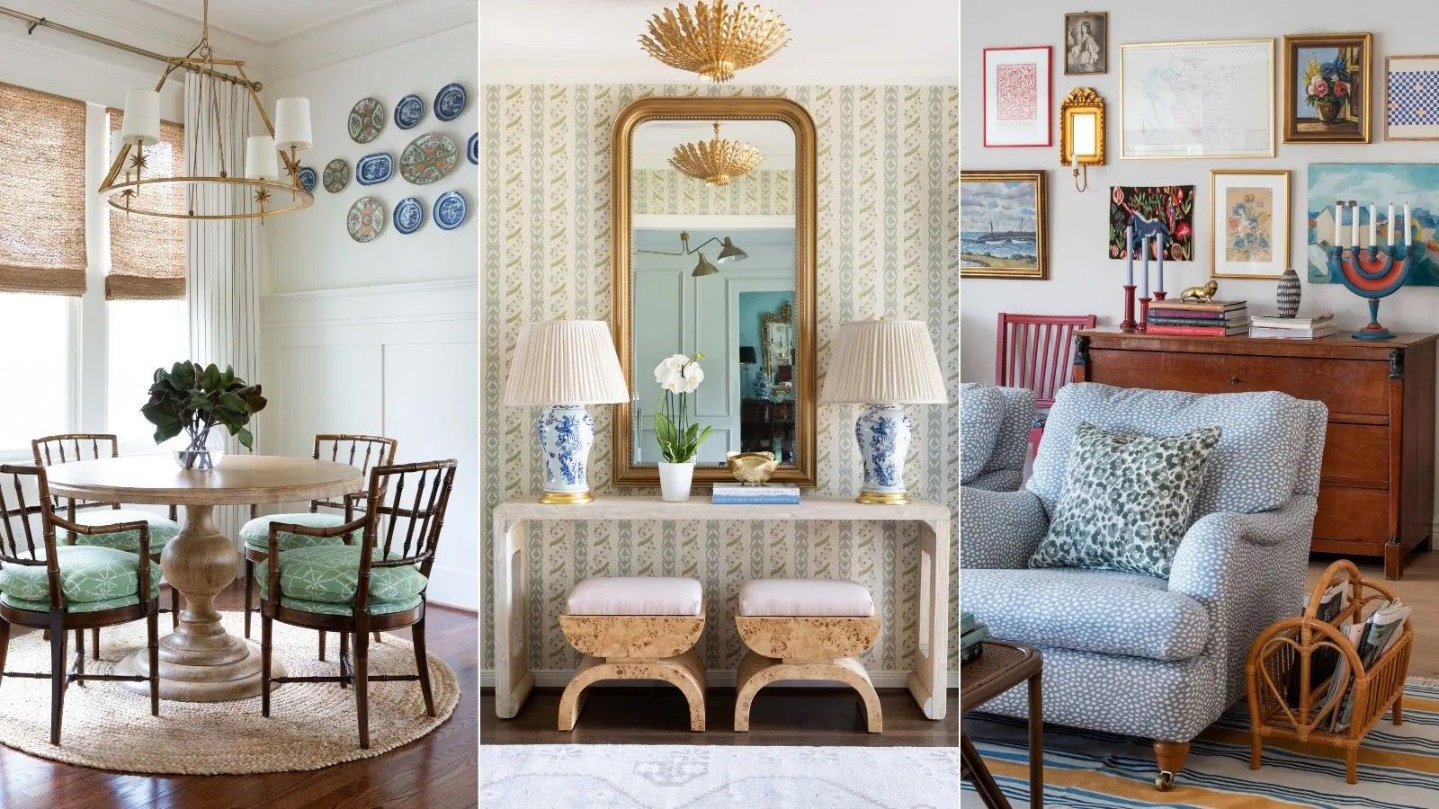 Një tjetër truk i përjetshëm është dekori me pasqyra, qofshin të varura si grup ose veçmas, kjo për të shtuar sa më shumë dritë natyrale në shtëpi.