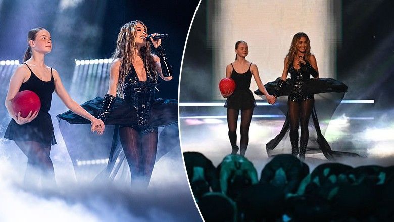 Këngëtarja 32 vjeçe, bëri një shfaqje shumë energjike teksa performoi një potpuri të hiteve të saj më të mëdha në “M&S Bank Arena” të Liverpoolit për gjysmëfinalen e parë të Eurovisionit.