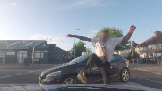 I nervozuar me incidentin, ai e ka qëlluar me shqelma veturën tjetër, pastaj e ka hedhur kafenë në xhamin e përparmë.