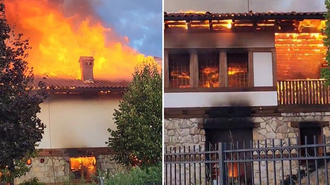 Disa pamje janë shpërndarë nga banorët ku shihet ndërtesa në flakë.