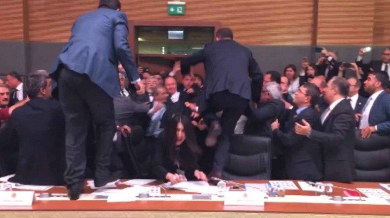 Mbledhja e së shtunës (24 dhjetor) e Komisionit të Drejtësisë në Parlamentin e Turqisë u shndërrua në një arenë të vërtetë përplasjesh midis deputetëve të Partisë AK në pushtet prej më shumë një dekade dhe deputetëve të Partisë Republika Popullore (CHP).