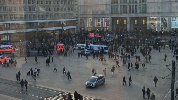 Policët përdorën s'prej dhe gaz lotsjellës për të shpërndarë turmën në Alexanderplatz, pasi përpjekjet me altorparlantë dështuan.