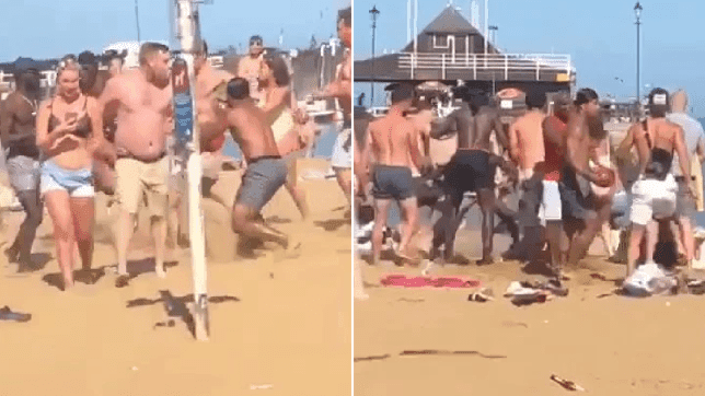 Përleshje masive në plazhin e mbushur me njerëz në Britani – publikohen pamjet