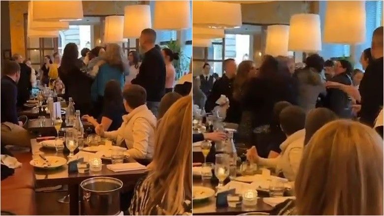 Ky është momenti kur një përleshje e dhunshme shpërtheu në një restorant të mbushur me njerëz, ndërsa gratë përdorën edhe grushtet dhe njëra u godit me një pasqyrë.