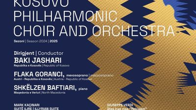 Kori dhe Orkestra e Filharmonisë së Kosovës do të sjellin një program me vepra të kompozitorëve nga Kosova nën dirigjimin e Baki Jasharit. Koncerti do të nisë me veprën "Suita ilire" nga Mark Kaçinari (në 90-vjetorin e lindjes së kompozitorit) dhe do të përfshijë tri vepra premierë: "Fantazi për piano" nga Blond Krasniqi me solist Shkëlzen Baftiarin (piano), poema simfonike "Mizer - Reçak" nga Liburn Jupolli dhe kantata "I miri i motrës" nga Korab Shaqiri me soliste Flaka Goranci (mexosoprano). Gjithashtu, në këtë mbrëmje do të interpretohen "Dies Irae" (Messa da Requiem) nga Giuseppe Verdi dhe "Vendi im" nga Valton Beqiri, e kompozuar mbi temën e këngës "Mallëngjimi". Numri i ulëseve është i kufizuar, prandaj rezervoni vendet tuaja.