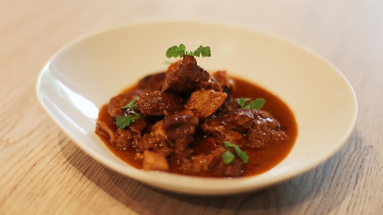 Karamelizimi i mishit në kombinim me aromën e specit do të avancojë shijen e gjithë gullashit.
