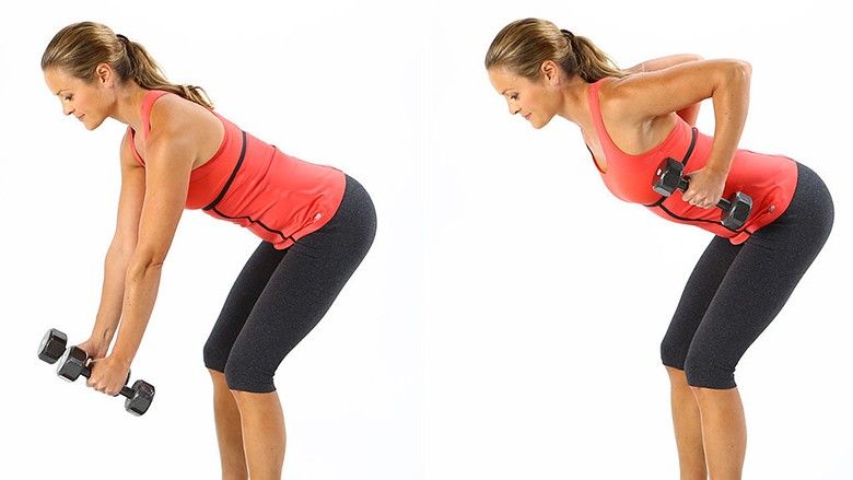 Qëndroni me shputa në gjerësinë e kërdhokullave dhe lakoni pak shpinën dhe përkuluni përpara. Duart janë paralel me kofshët, nën këndin prej 45 gradësh. Tërhiqni duart mbi bel. Këtë ushtrim bëjeni 6 herë nga 15 përsëritje.