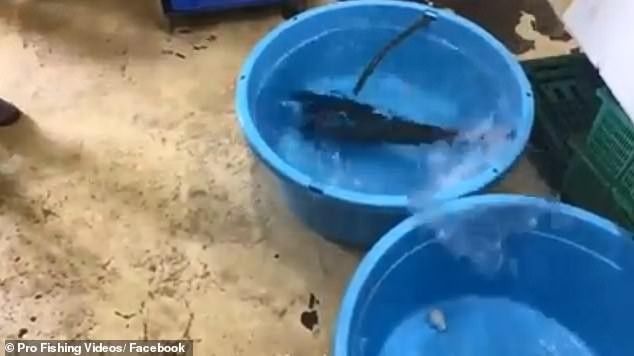 Për një moment, peshku qëndron pa lëvizur, derisa nuk iu shkri trupi dhe nisi fillimisht ta përplaste bishtin, pasta edhe të notonte.