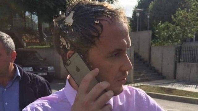 Petrit Selimi goditet në kokë me vezë (Foto/Video)