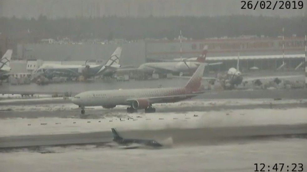 E gjithë ngjarja është filmuar në aeroportin Sheremetyevo në Moskë, ku pasi që rrëshqet në pistë piloti humb kontrollin mbi timonin dhe aeroplani fillon të lëviz anash, transmeton Telegrafi.
