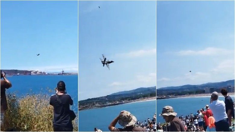 Dhe pamjet janë bërë virale në mediat sociale, duke treguar Hornet duke fluturuar në lartësi shumë të ulët drejt plazhit të mbushur me spektatorë, kur kreu një kthesë të fortë djathtas.