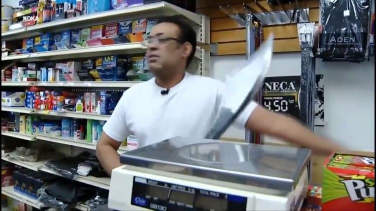 Në një dyqan që ndodhet në Pensilvani të Shteteve të Bashkuara, shitësi ia ka nxjerrë shpatën gjigante një plaçkitësi.
