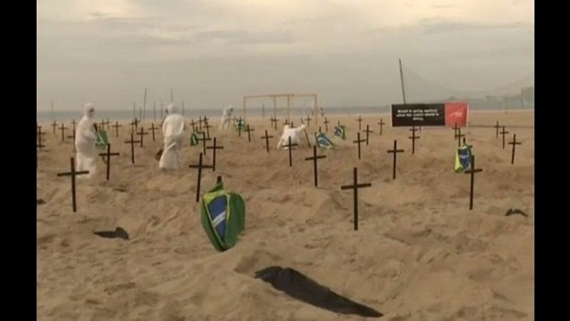 Anëtarët e një organizate jo qeveritare filluan të gërmojnë njëqind varre në rërë, vendosën disa kryqe dhe flamuj të Brazilit për të theksuar numrin e lartë të vdekjeve nga COVID-19.