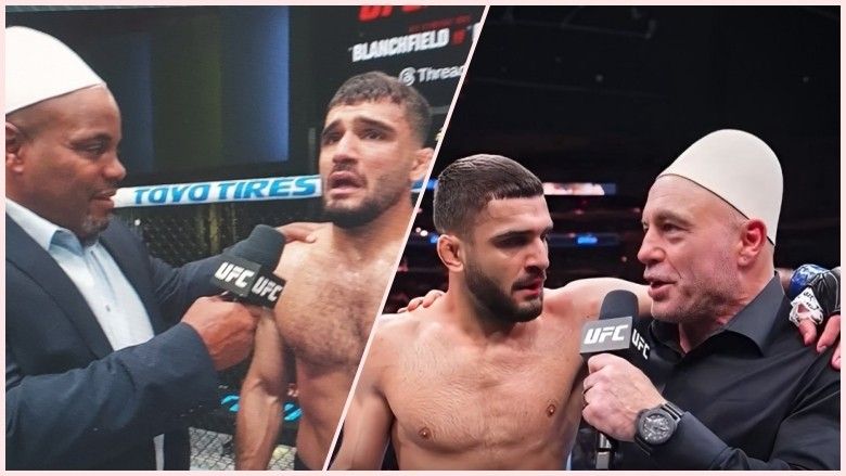 Ramiz Brahimaj të njëjtën gjë bëri edhe me Joe Rogan gjatë intervistës pas ndeshjes, duke i vënë plisin në kokë.