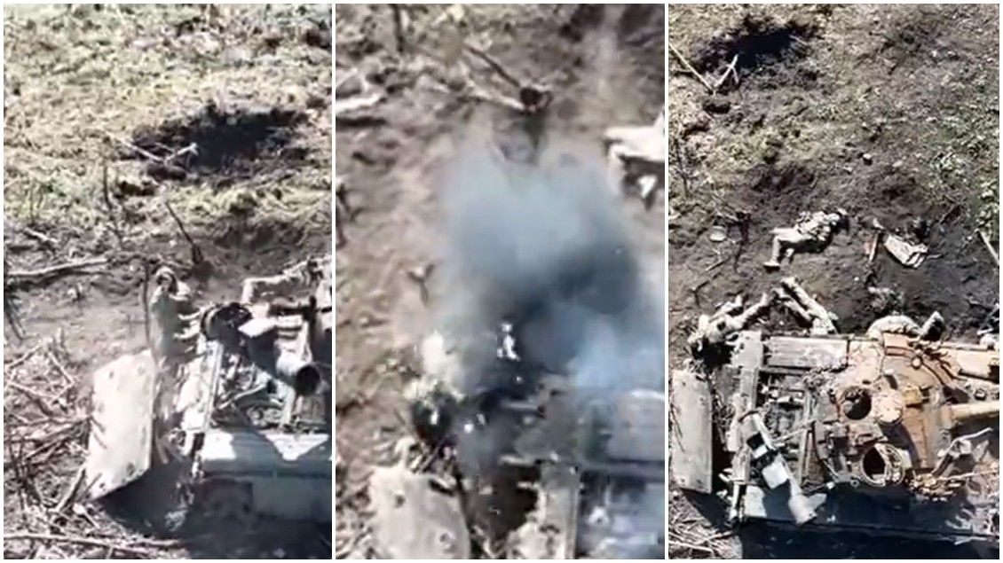 Derisa katër ushtarë rusë nuk lëviznin dhe ishin pa ndjenja, njëri prej shokëve të tyre po mundohej të gjuante dronin sulmues të ukrainasve, por pa sukses. Pas disa çasteve e goditi fuqishëm një predhë, e cila i ra në kokë, duke e lënë atë të pavetëdijshëm.