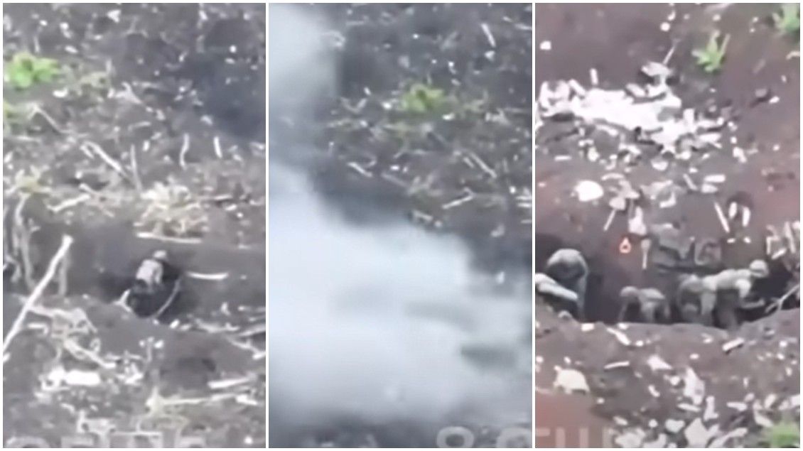 Në bazë të asaj që shihet, forcat ukrainase po bombardonin vazhdimisht me predha ushtarët rusë që po tentonin të fshiheshin në llogore.