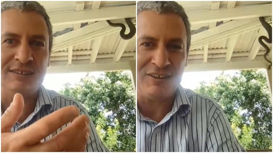 Derisa Ward po fliste në podkast gjatë një video-lidhje një gjarpër piton zbriti nga çatia e verandës së tij.