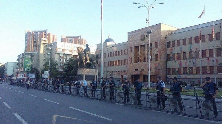 Policia e Republikës së Maqedonisë dhe pjesëtarët e njësitit special të MPB sonte e zhvendosën rrethojën e çeliktë me të cilën e mbrojnë ndërtesën e Kuvendit të RM për dhjetëra metra më përpara, transmeton Telegrafi Maqedoni.