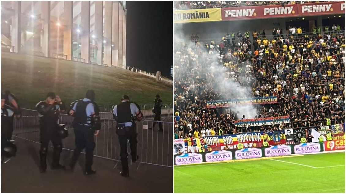 Policët krijuan një korridor sigurie përmes të cilit ultrasit që shkaktonin probleme në ndeshjen Rumani - Kosovë mund të evakuoheshin nga stadiumi.
