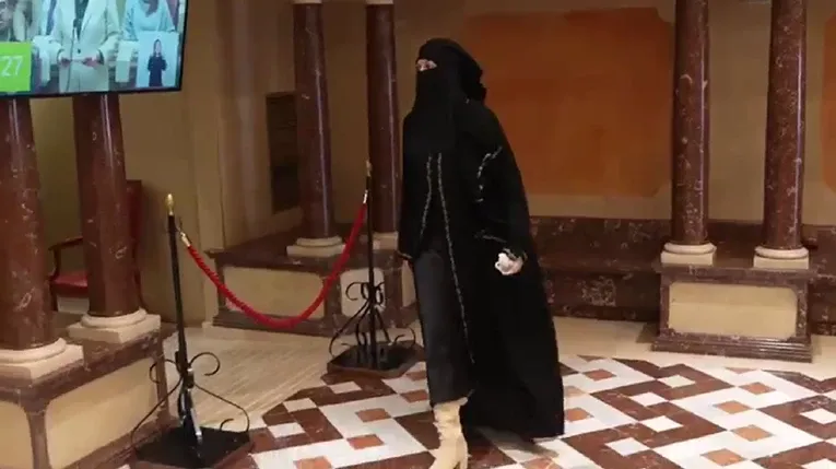 Në video ajo shihet duke hyrë në ndërtesën e parlamentit rajonal e veshur me nikab.