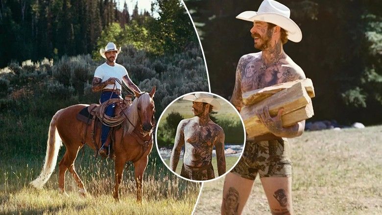 Në imazhe të tjera shihet me kapelë kaubojsi, hipur mbi kalë apo duke mbledhur dru zjarri – duke e sjellë plotësisht në stilin e një ylli country.