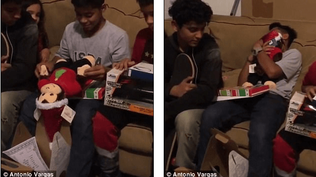 Antonio Vargas Sr nga Orlando, ka filmuar momentin prekës kur biri i tij Antonio JR hap dhuratën dhe shpërthen në lot, kur dëgjon në lodrën (majmun) zërin e nënës së tij të vdekur, transmeton Telegrafi.